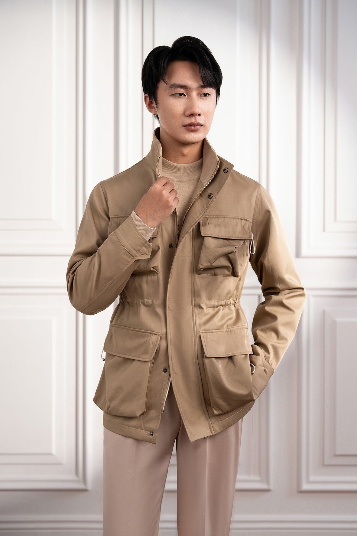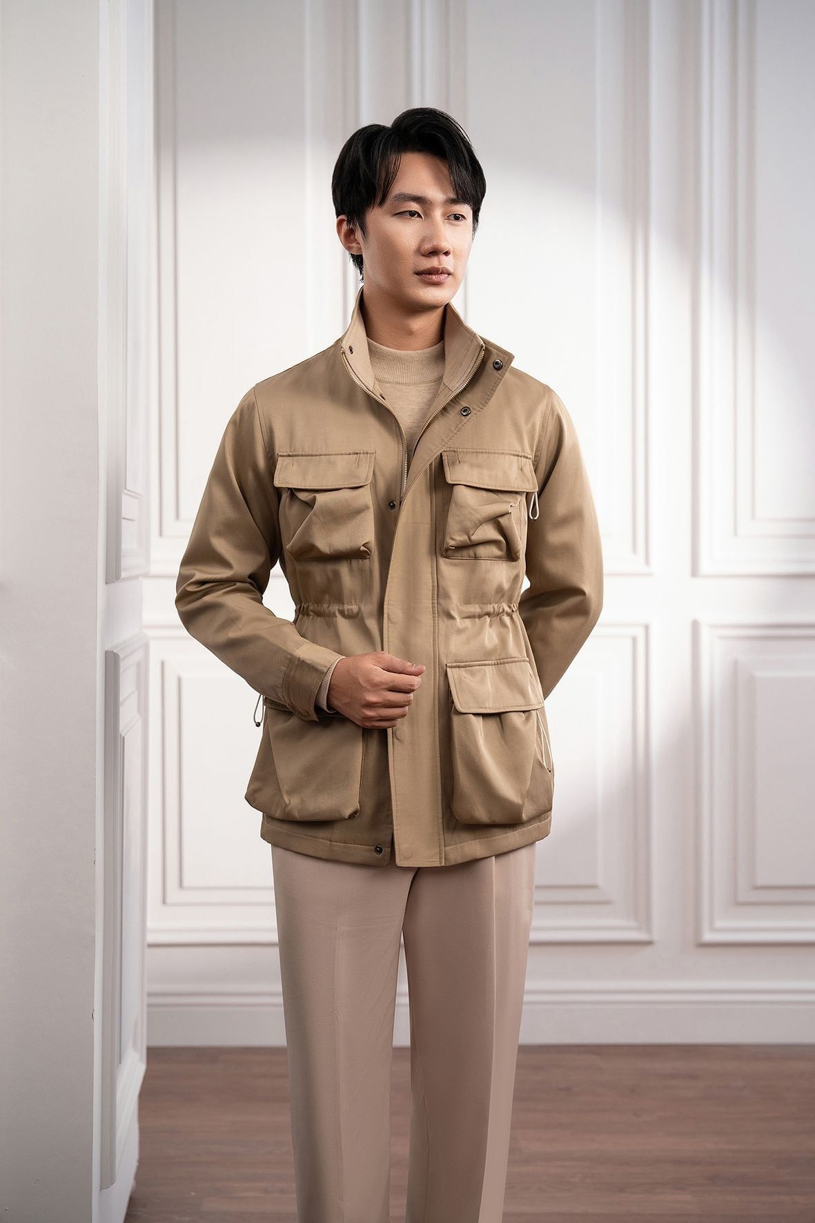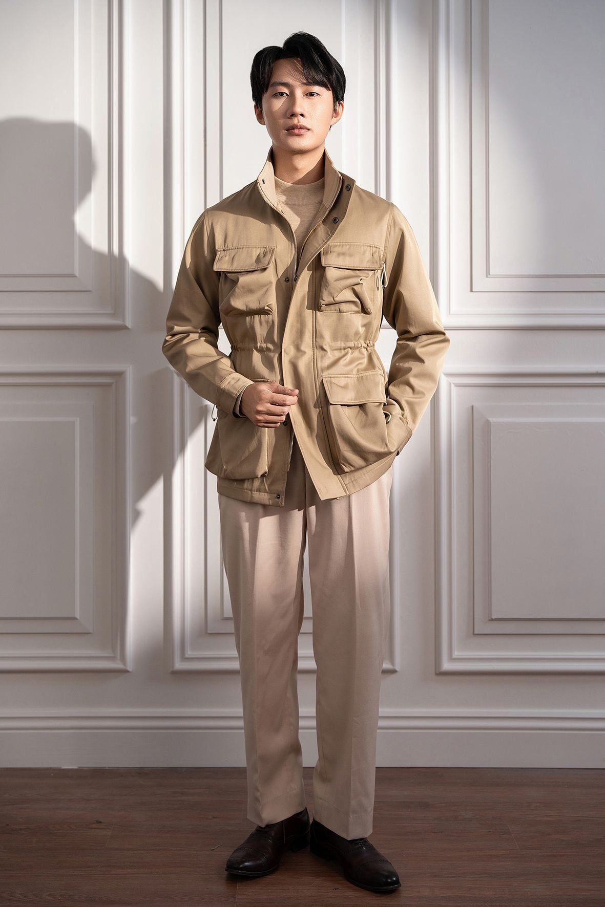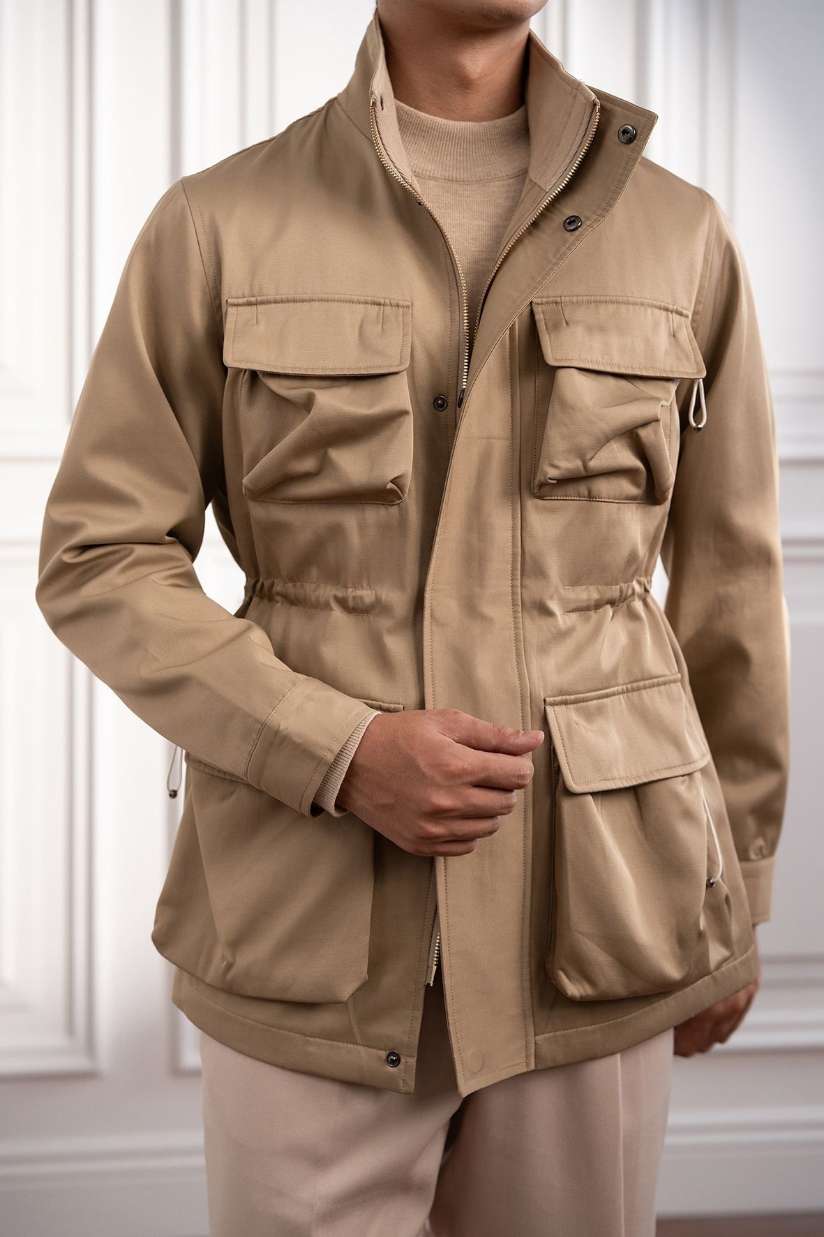 Áo khoác Safari be trơn túi hộp - AK077 - 52