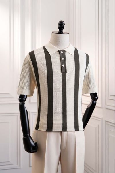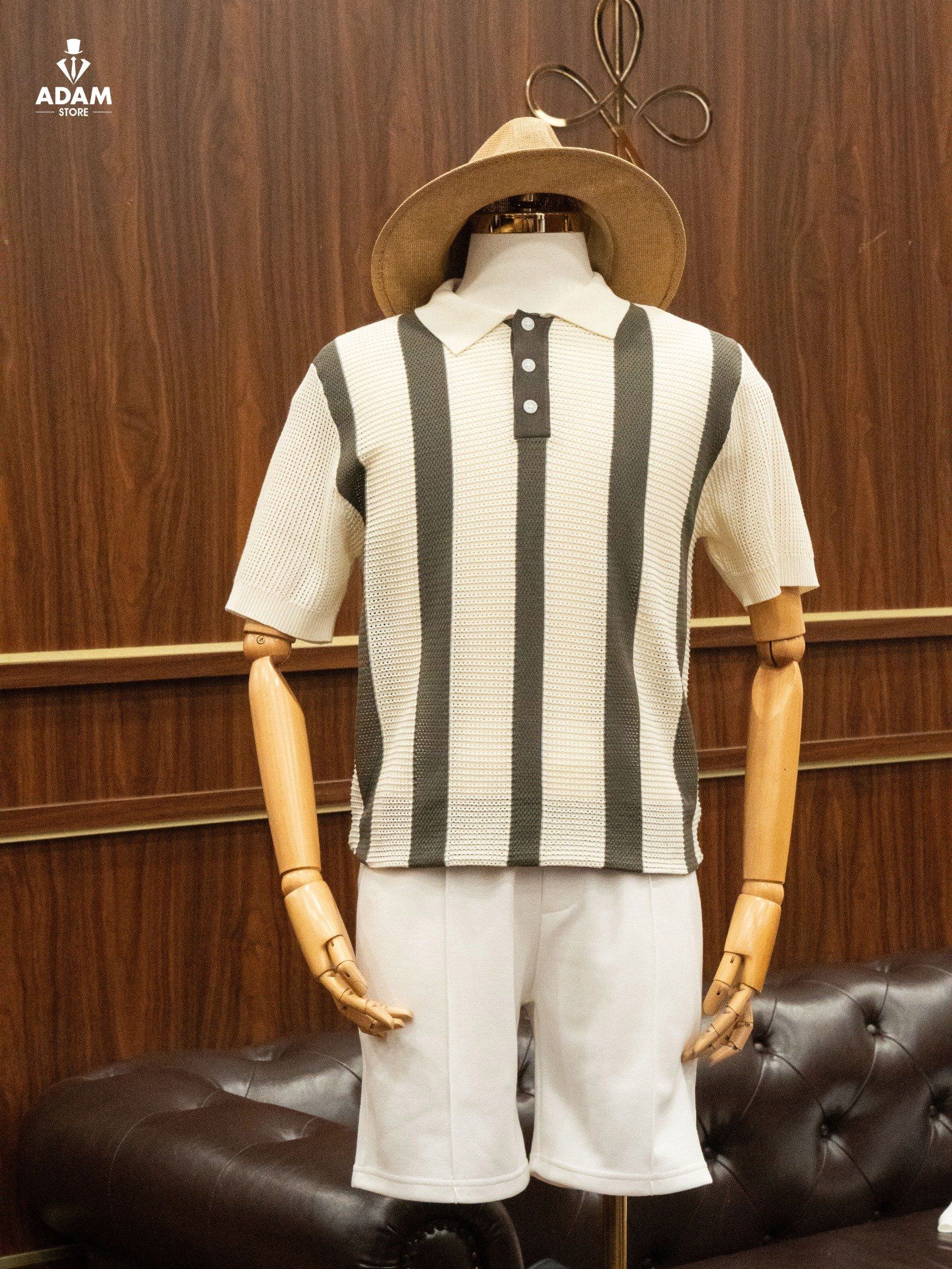 Áo Mongtoghi Trắng sọc Rêu tối dệt kim - AP233 - 48