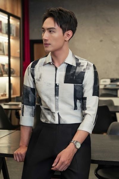 Sơ mi trắng đen họa tiết SMC177 (48-56) - 56