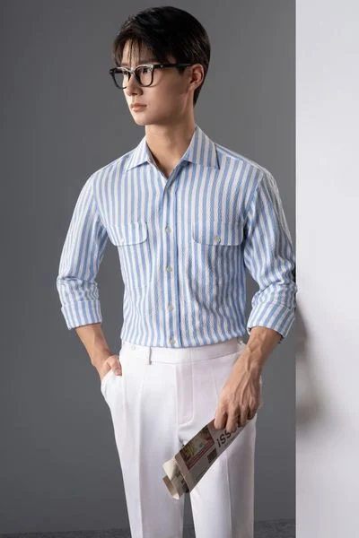 Sơ mi xanh sọc trắng - SMC162X - 50